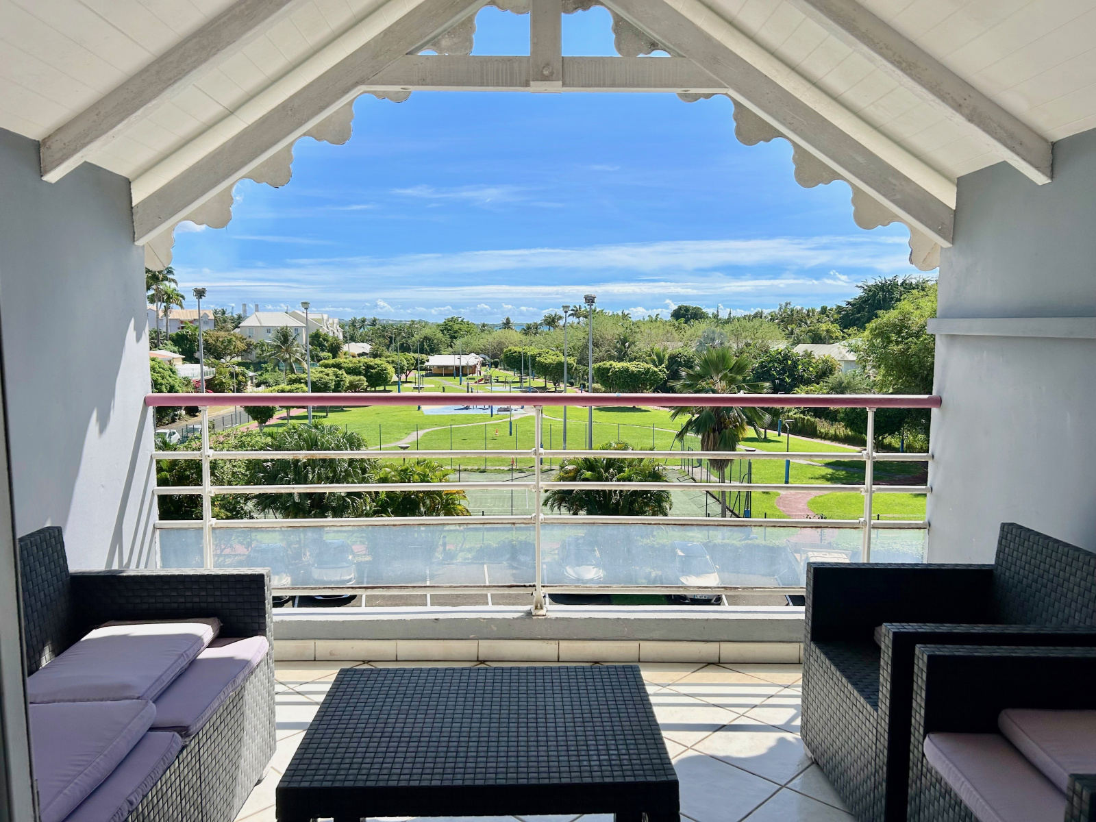 Situé au 3ème et dernier étage, il est traversant et se compose comme suit : un séjour, une cuisine ouverte, une chambre climatisée avec un dressing, une salle d'eau avec un wc. Il dispose également d'une terrasse couverte avec une vue dégagée. Une pièce pouvant servir de bureau, ou de buanderie apporte un vrai plus.