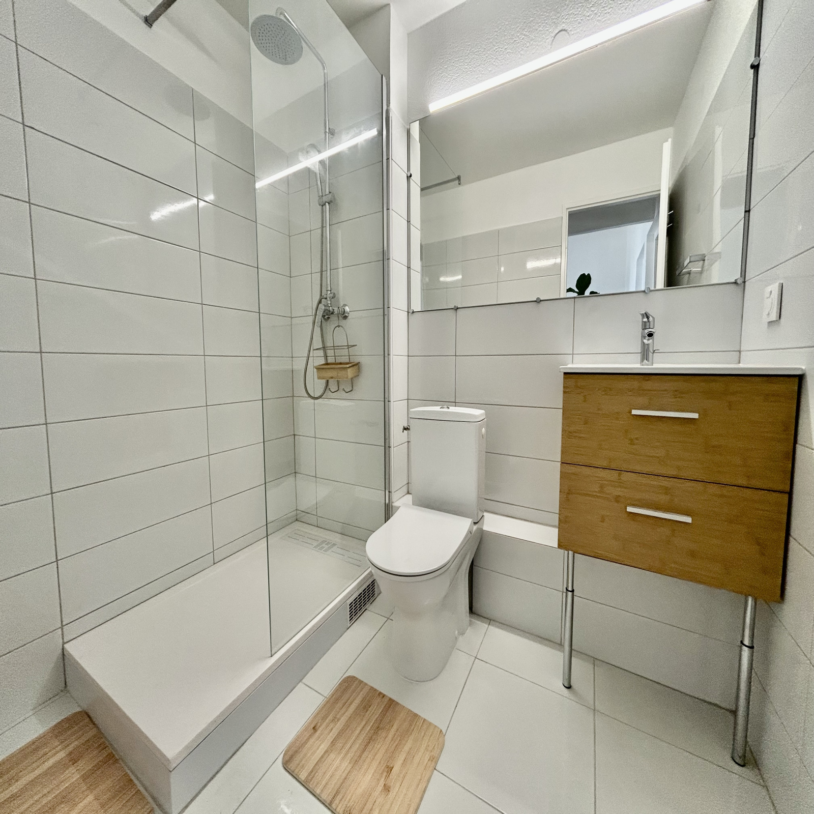 Il se compose d’un séjour lumineux offrant une belle hauteur sous plafond, d’une cuisine neuve, aménagée et entièrement équipée, ouvrant sur une agréable terrasse fermée par un volet roulant.