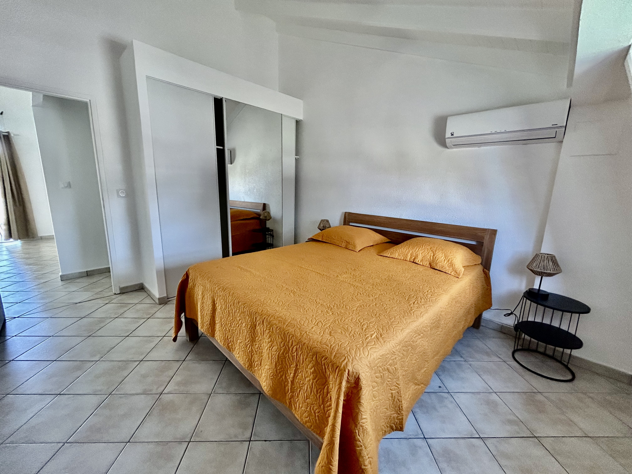 L’appartement comprend également deux chambres climatisées, une salle d’eau moderne avec WC, et bénéficie de prestations de qualité dans un environnement soigné.