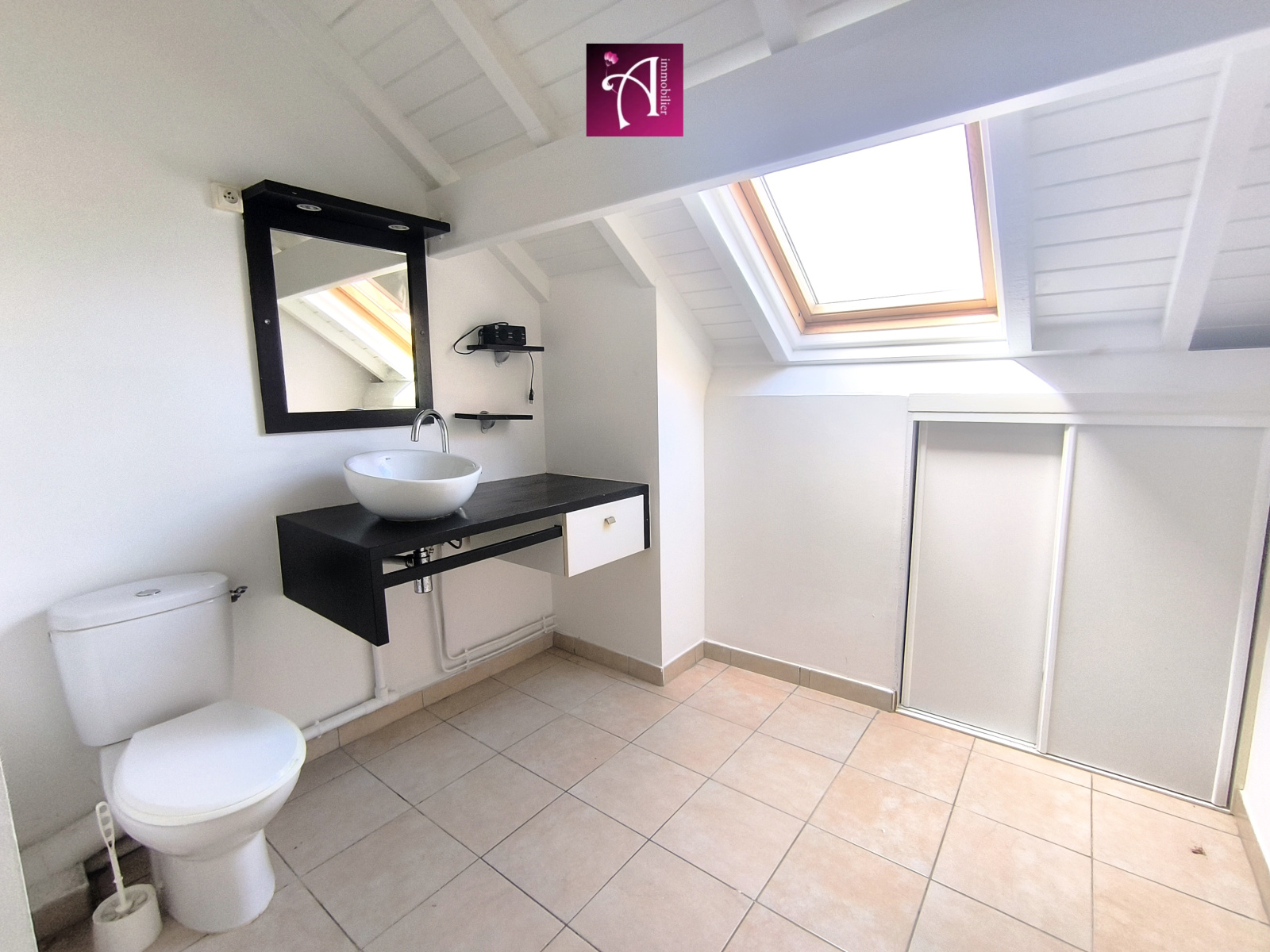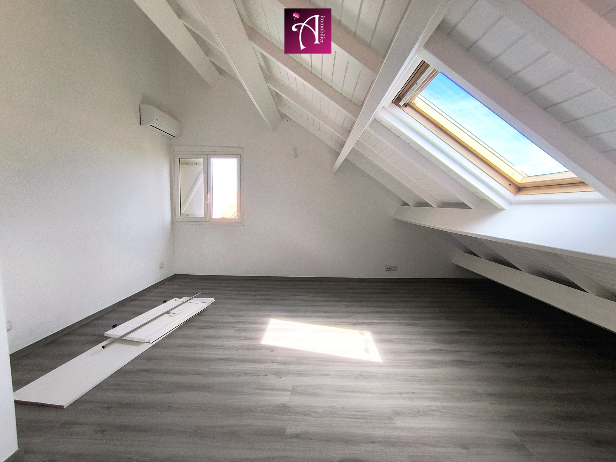 A l'étage, deux grandes chambres climatisées avec espaces de rangements, une salle d'au commune avec WC.