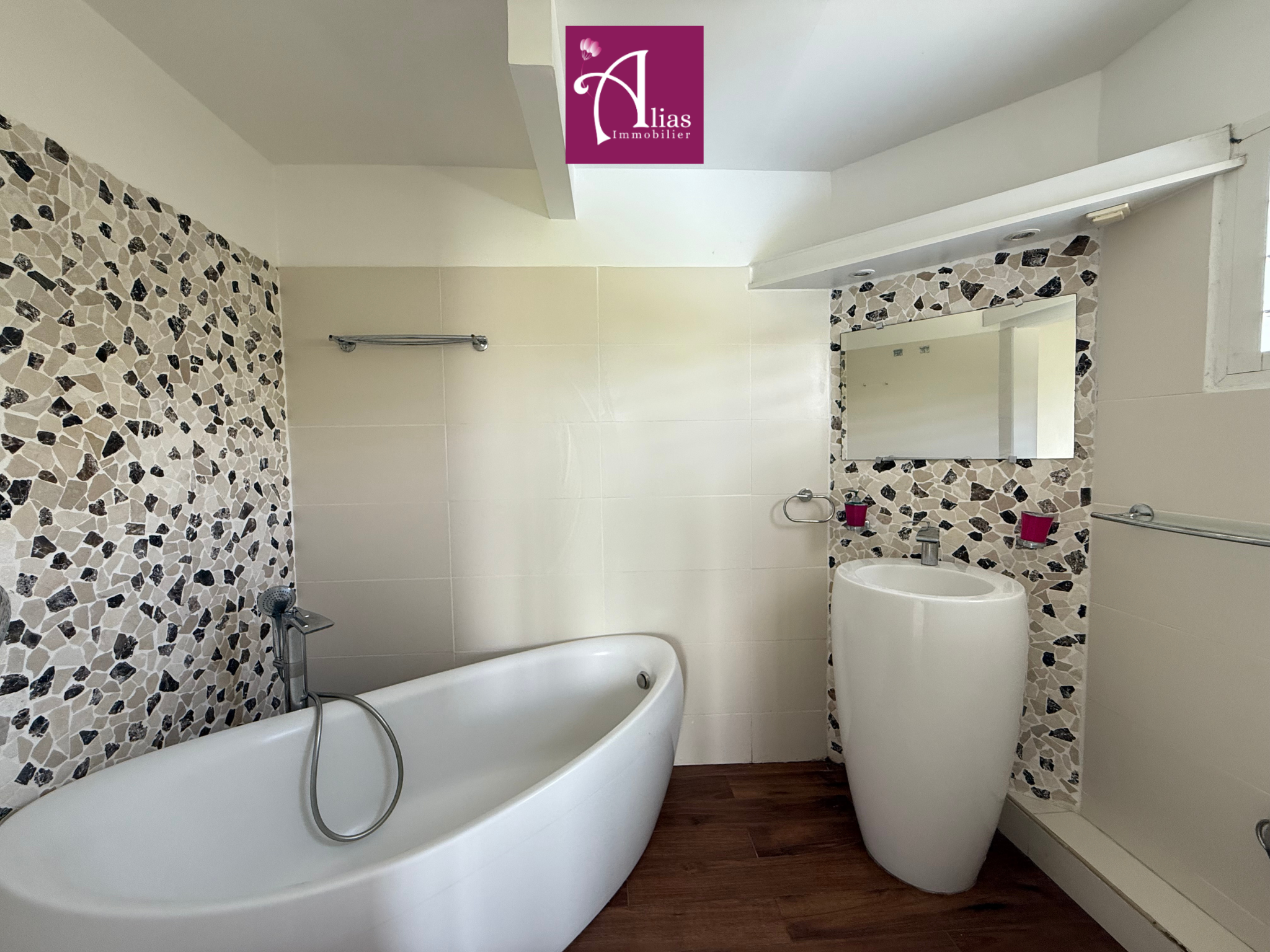 Ce bien est doté de 2 places de parking privatives dans la résidence + garage ouvert à l'intérieur pouvant recevoir un véhicule supplémentaire. Il est également équipé d'une citerne d'eau de pluie qui alimente le WC du bas.