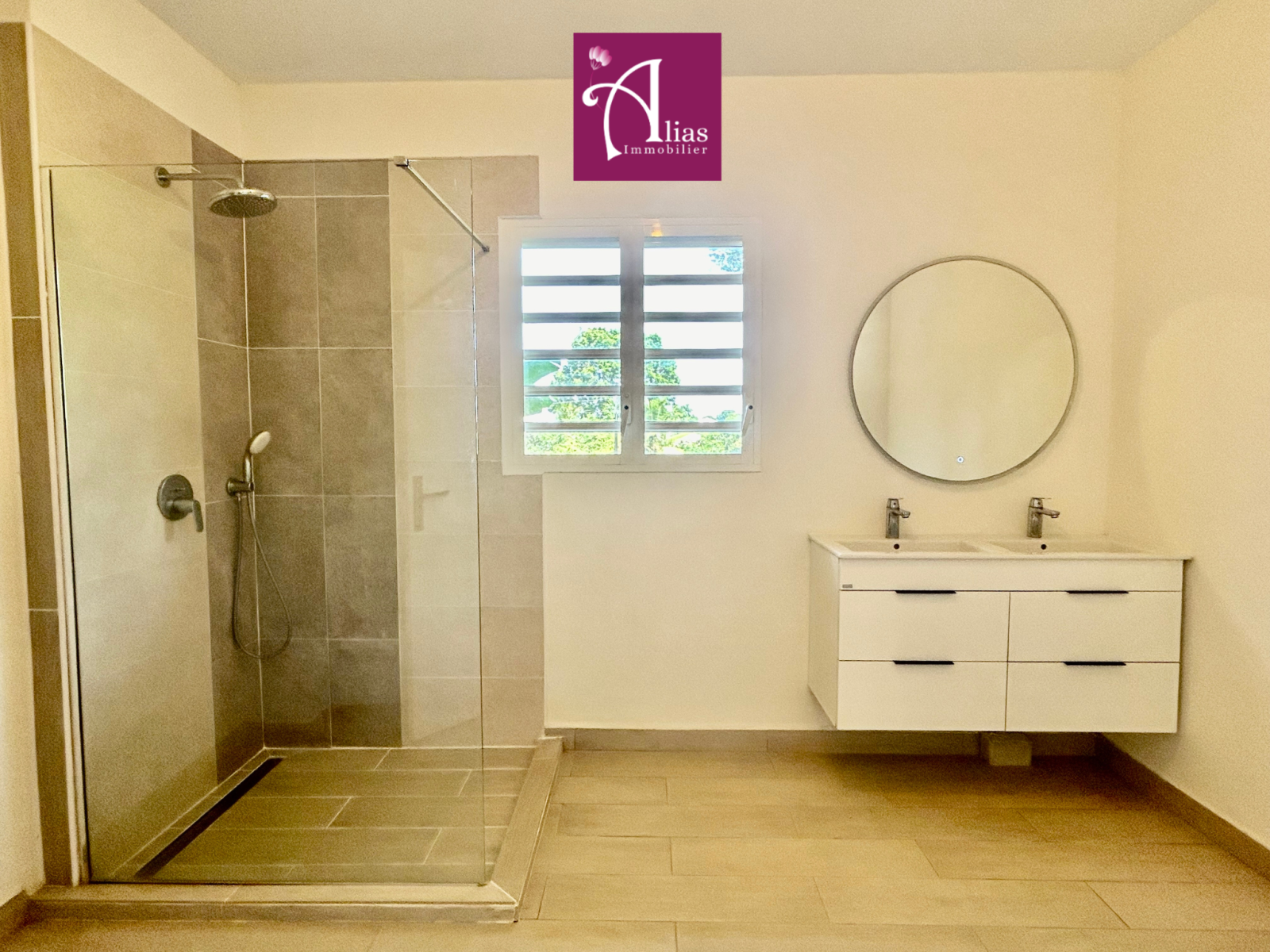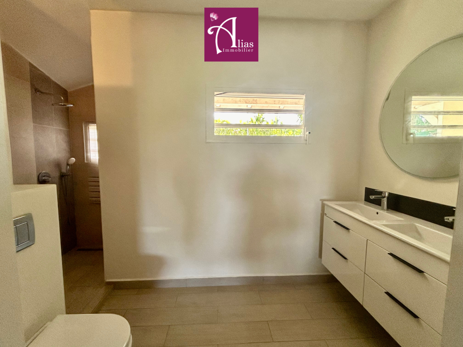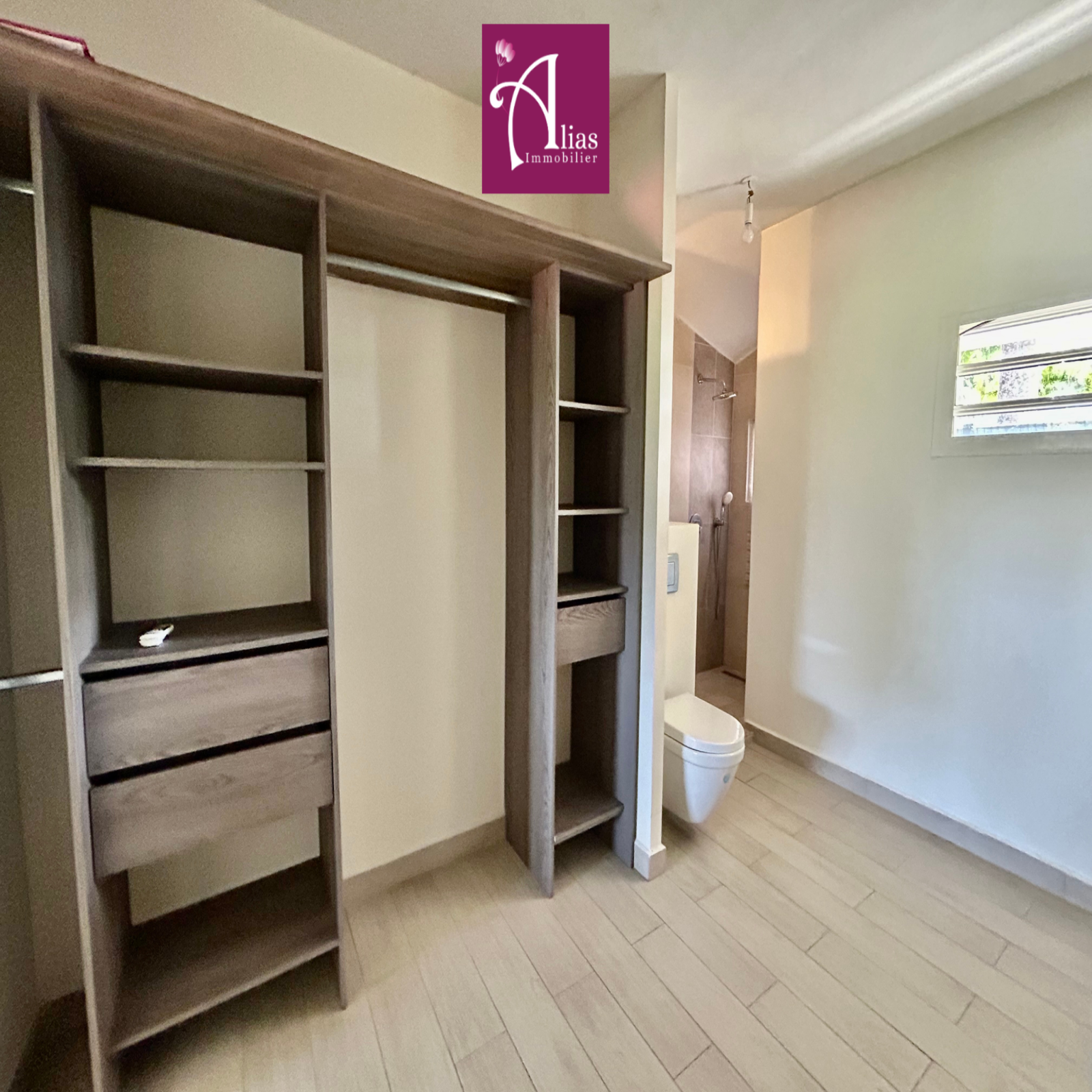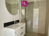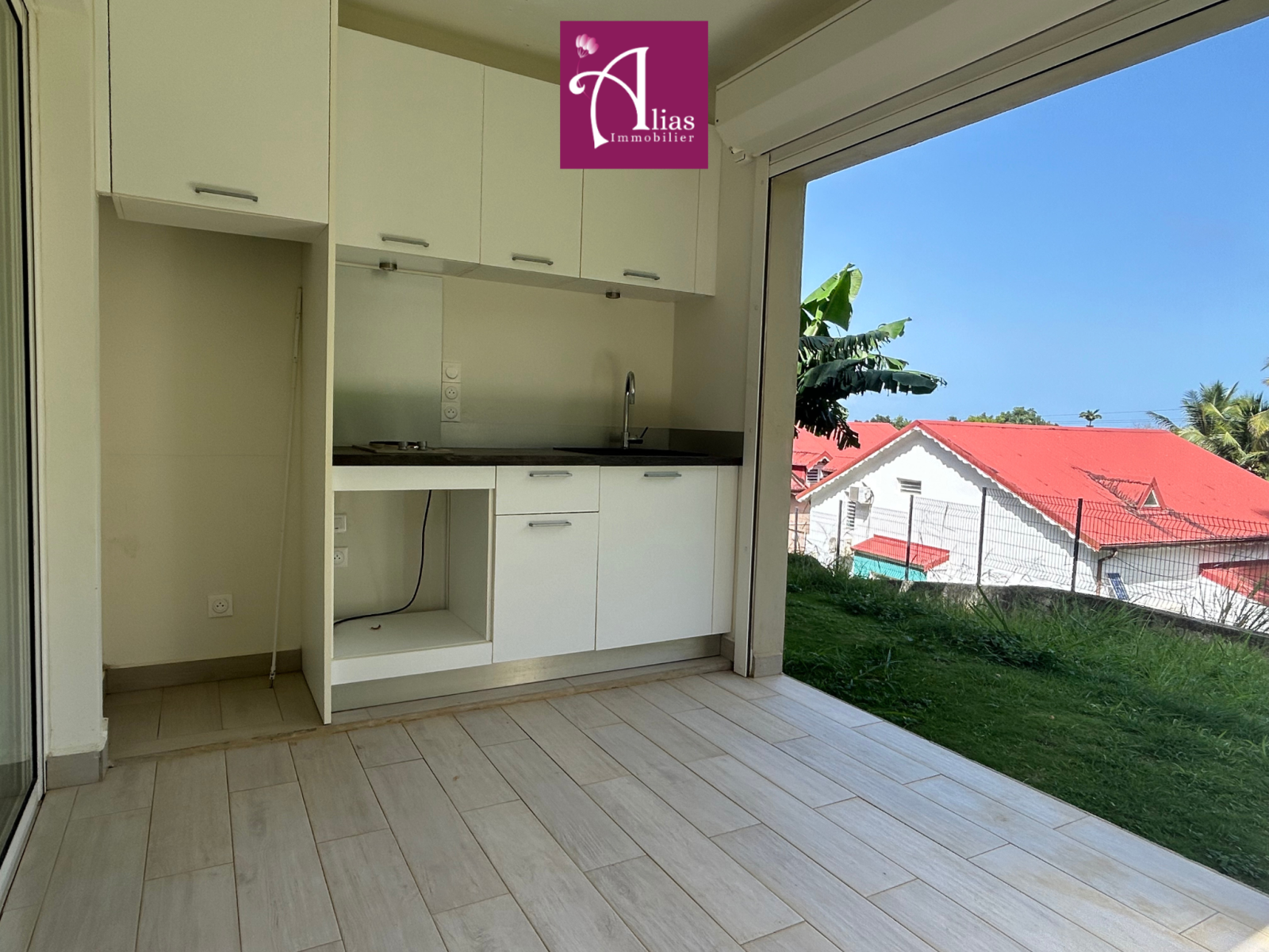 Vous trouverez un séjour lumineux ouvert sur une cuisine équipée (avec plaque de cuisson 4 feux) et aménagée donnant sur une terrasse couverte de 31m2 offrant une belle vue dégagée. Vous trouverez également un WC indépendant, une grande suite parentale climatisée de 25,60 m² avec dressing et salle d’eau attenante avec un WC.