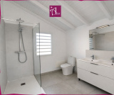 A l'étage, 2 chambres climatisés avec placards, une salle d'eau commune, WC et une suite parentale avec dressing, salle d'eau avec WC.