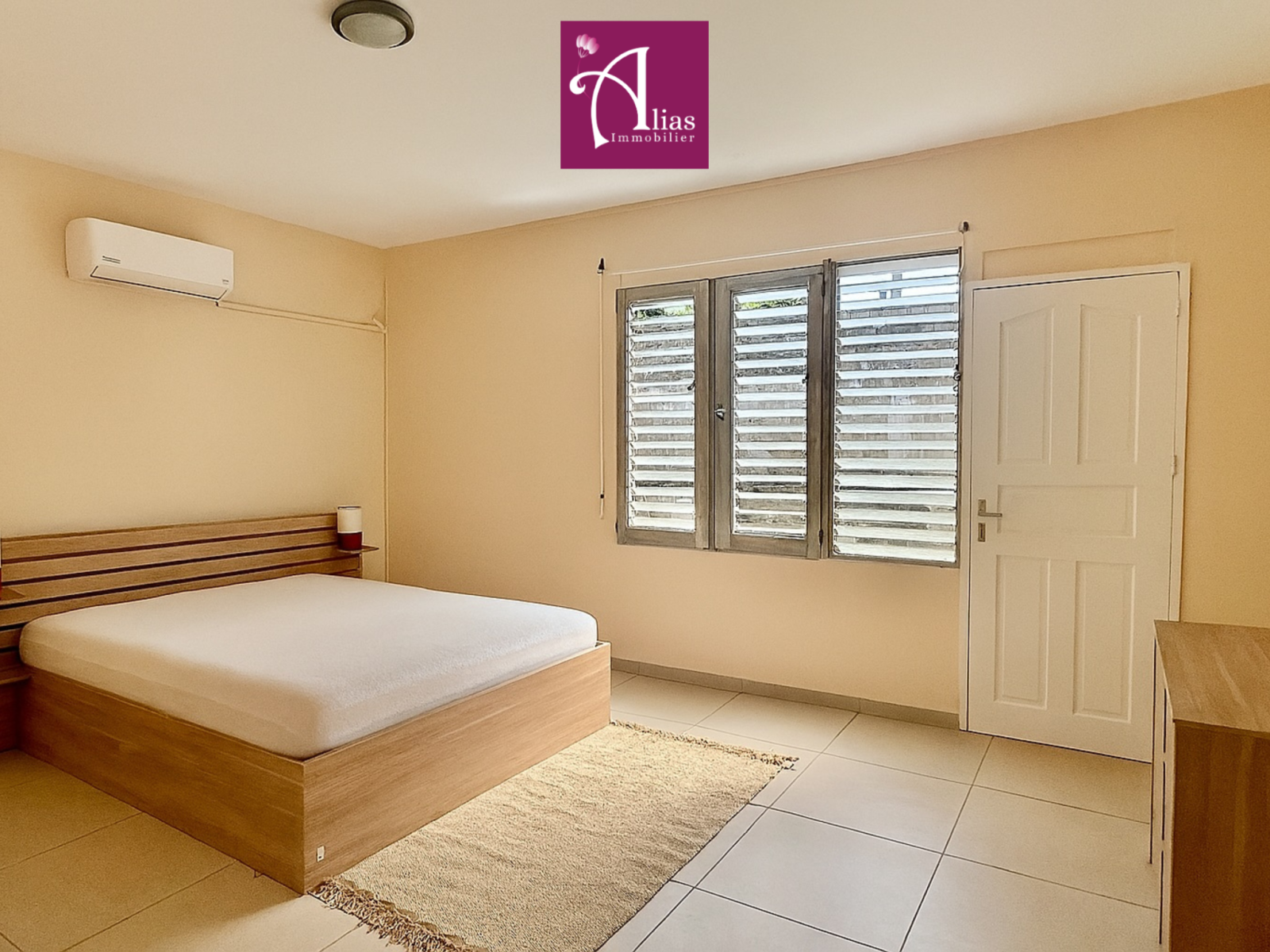 Elle se compose d'un grand séjour lumineux, trois chambres climatisées, une cuisine aménagée et équipée, une buanderie, un wc indépendant, une salle d'eau avec un wc, un bureau pouvant servir de 4ème chambre. Une terrasse couverte et une place de parking extérieure.