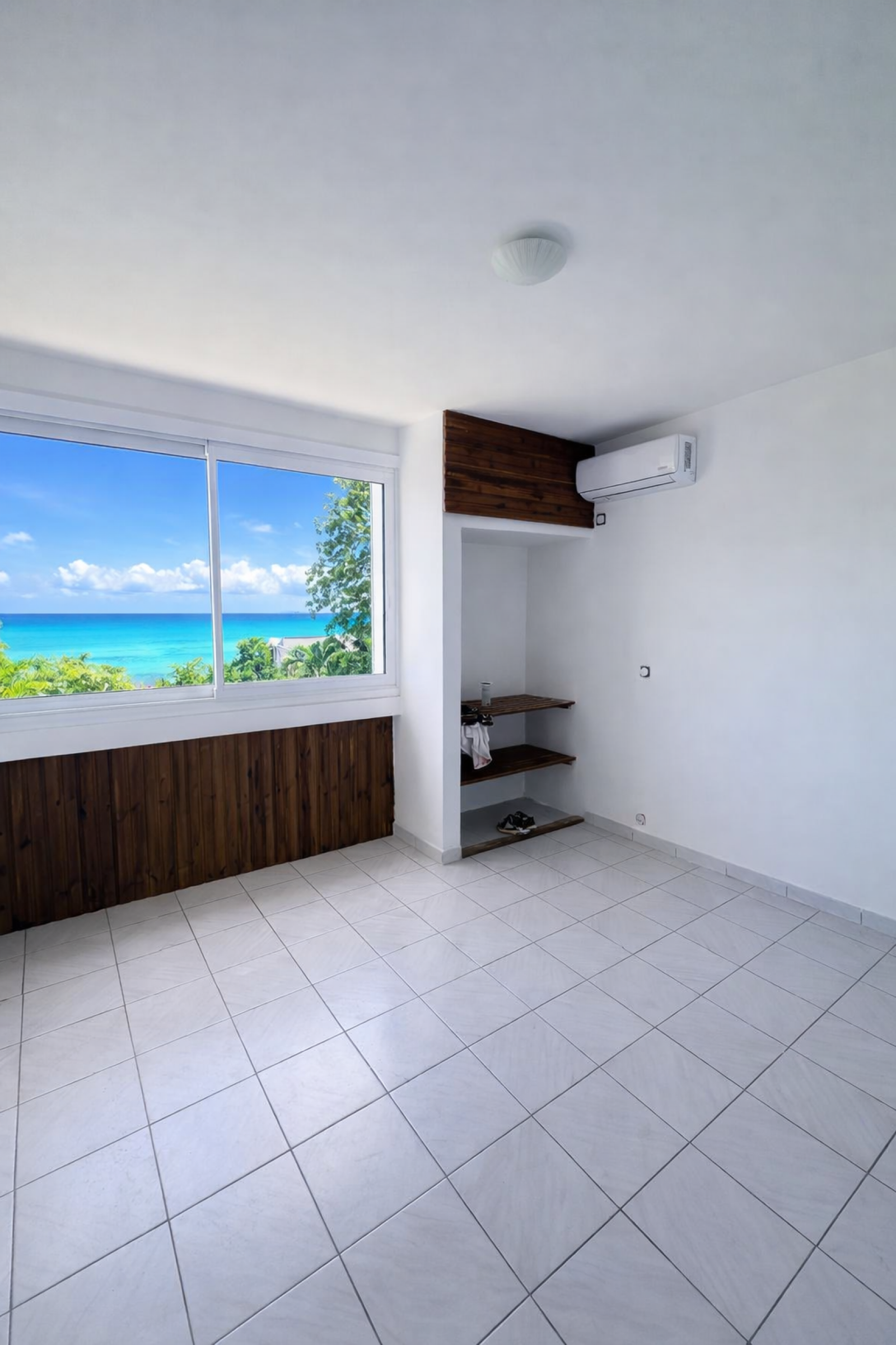 - Une chambre climatisée avec vue mer