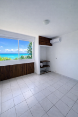 Dès l’entrée, vous accédez directement à un séjour lumineux ouvert sur un balcon offrant une vue imprenable sur une mer turquoise. Le séjour est équipé d’un brasseur d’air et se ferme grâce à une baie vitrée avec volet roulant motorisé.