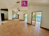 Un grand séjour lumineux avec balcon offrant une vue mer et montagne