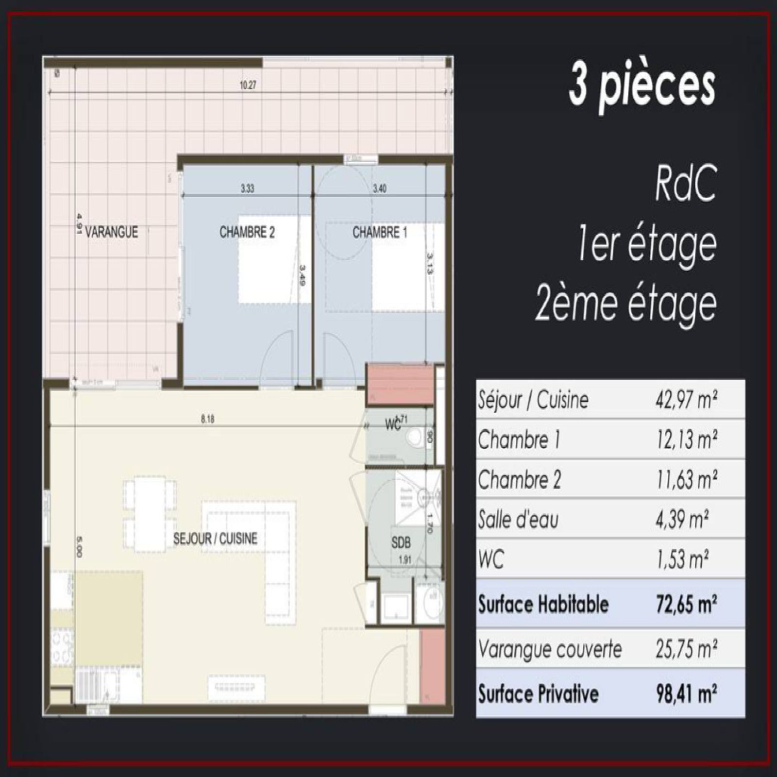 Situé au rez-de-chaussée d'un immeuble sécurisé par une entrée à digicode et vidéophonie, cet appartement est doté d'un séjour-cuisine spacieux de plus de 33 m2, de deux chambres dont une avec placard, d'une salle d'eau moderne et d'une terrasse couverte de 18 m2.