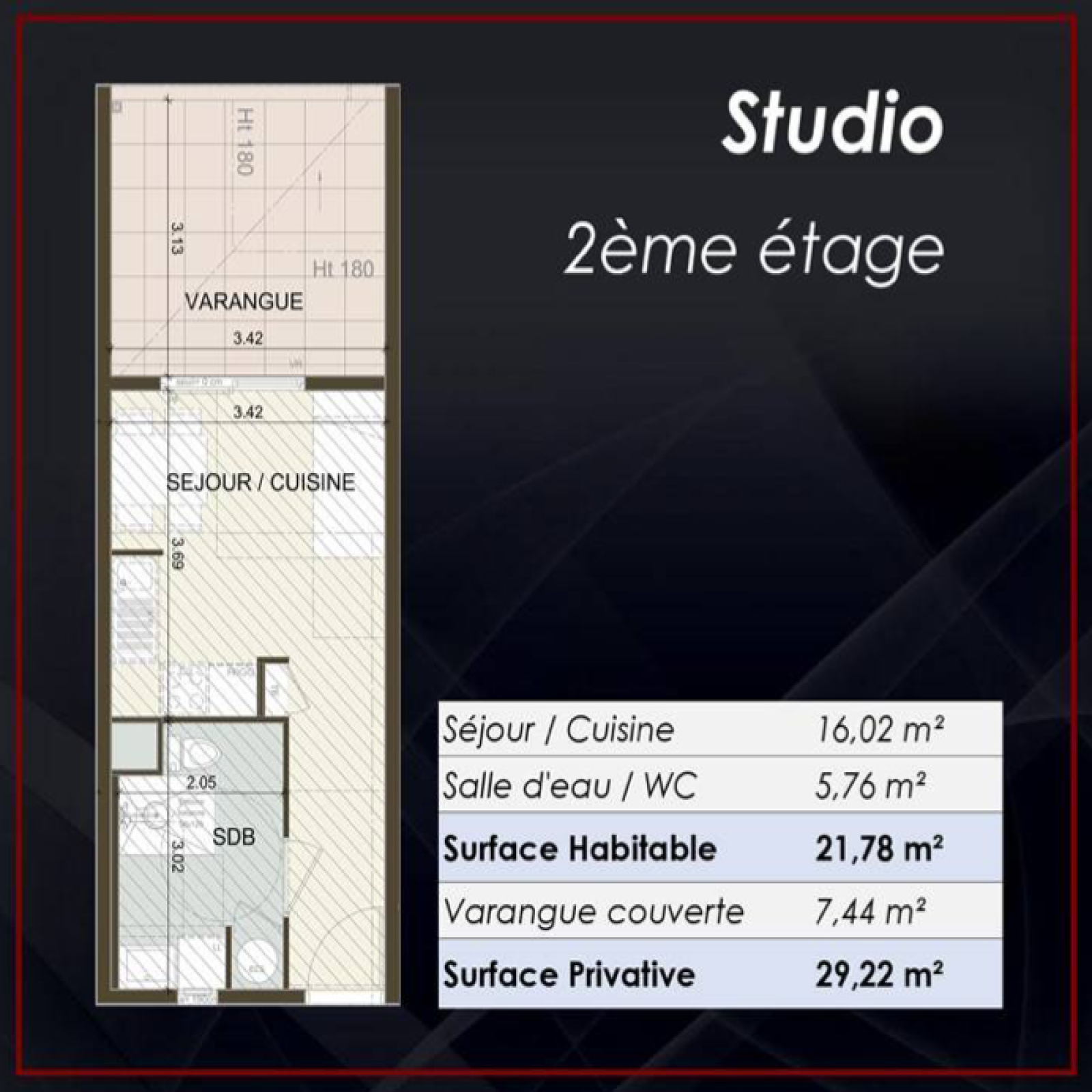 Situé au dernier étage d'un immeuble sécurisé par une entrée à digicode et vidéophonie, ce STUDIO est doté d'une pièce principale de 21,78 m2 avec coin cuisine, d'une salle d'eau moderne avec WC et d'une terrasse couverte de 7 m2.