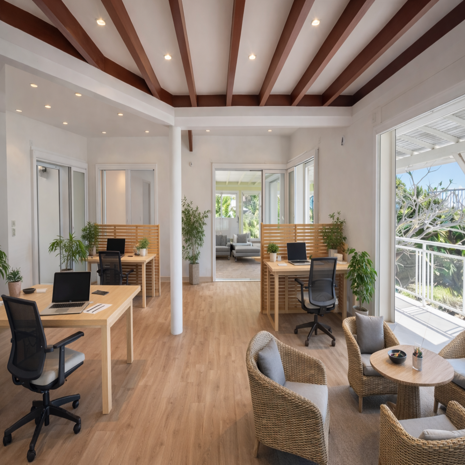 Deux terrasses fermées augmentent la surface exploitable pour salles de réunion, coworking ou bureaux supplémentaires.