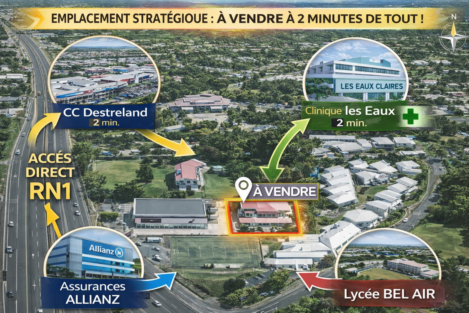 L’implantation permet un accès rapide à la zone économique de Jarry, aux établissements scolaires, aux services médicaux et aux infrastructures commerciales.
