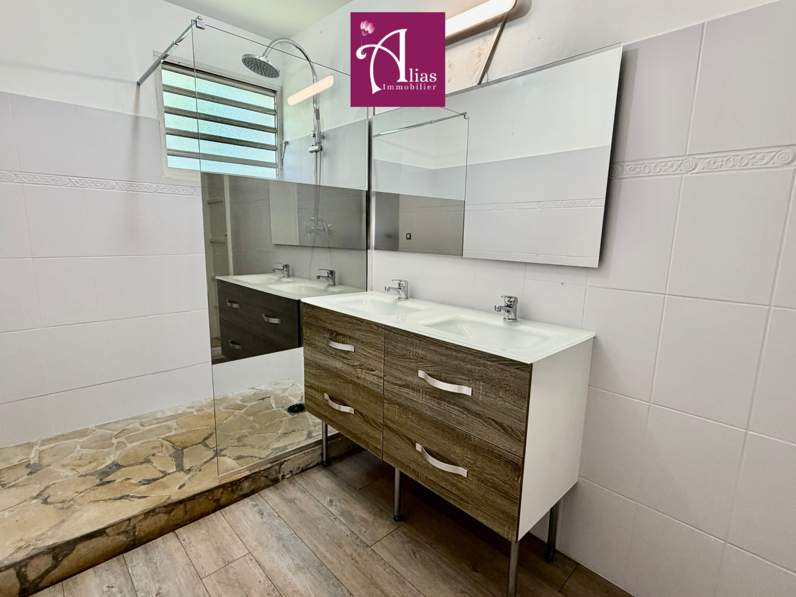 Vous profitez également d’un jardin privatif clôturé et piscinable, véritable havre de paix, agrémenté d’un majestueux arbre Ylang-Ylang en pleine floraison, offrant un cadre de vie agréable. Deux places de parking intérieures sécurisées complètent ce bien.