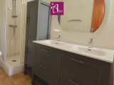 une chambre avec espace bureau, salle d’eau et WC privatifs.