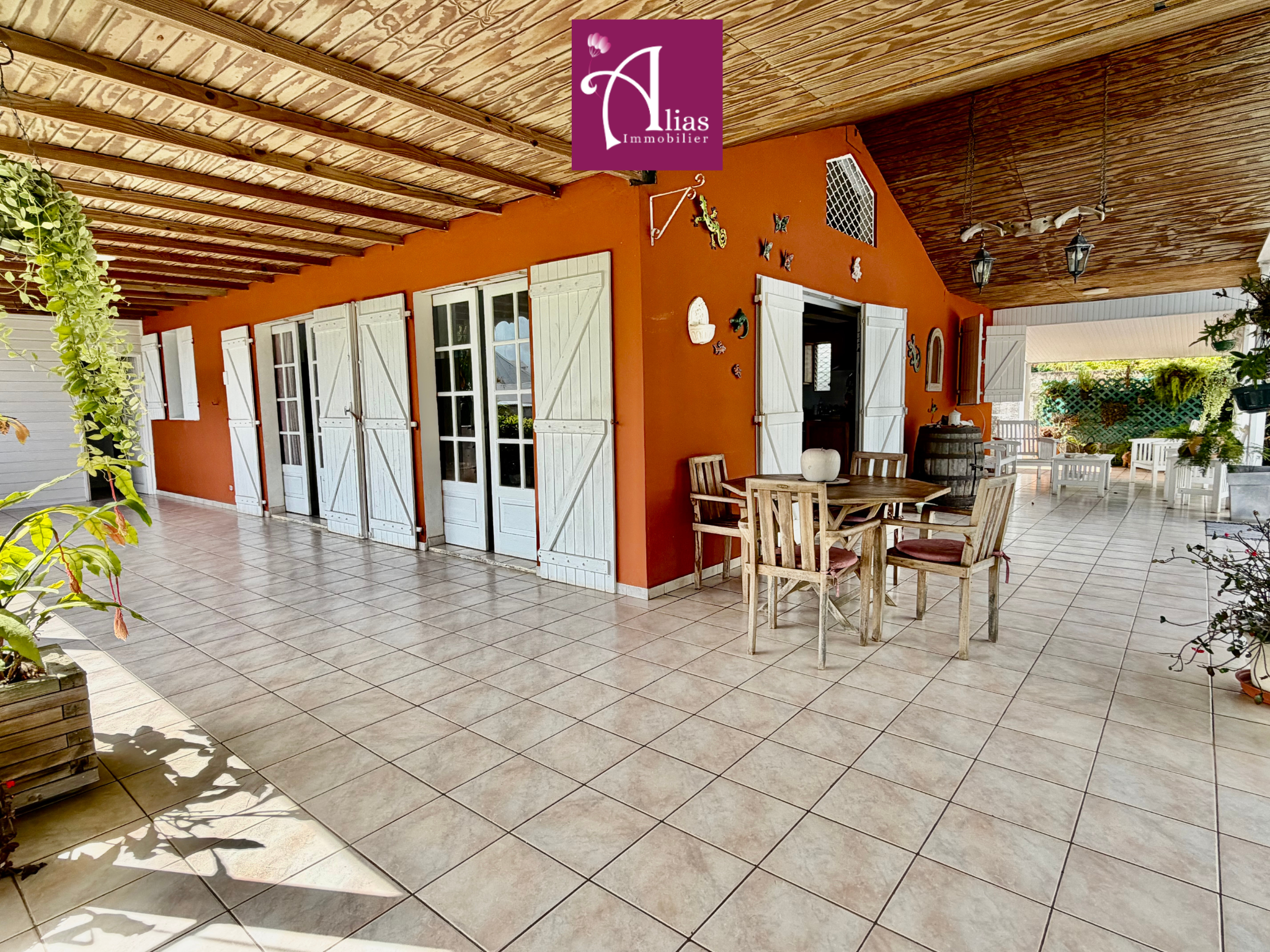 À l’extérieur, une spacieuse terrasse en L donne sur une piscine chauffée au sel (6 m x 3 m), parfaite pour la détente.