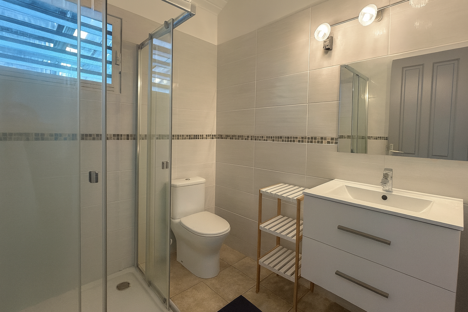Elle se compose d’un séjour, d’une cuisine moderne, de deux chambres climatisées, d’une salle d’eau en commun avec WC ainsi que d’une chambre principale avec salle d’eau attenante et WC.