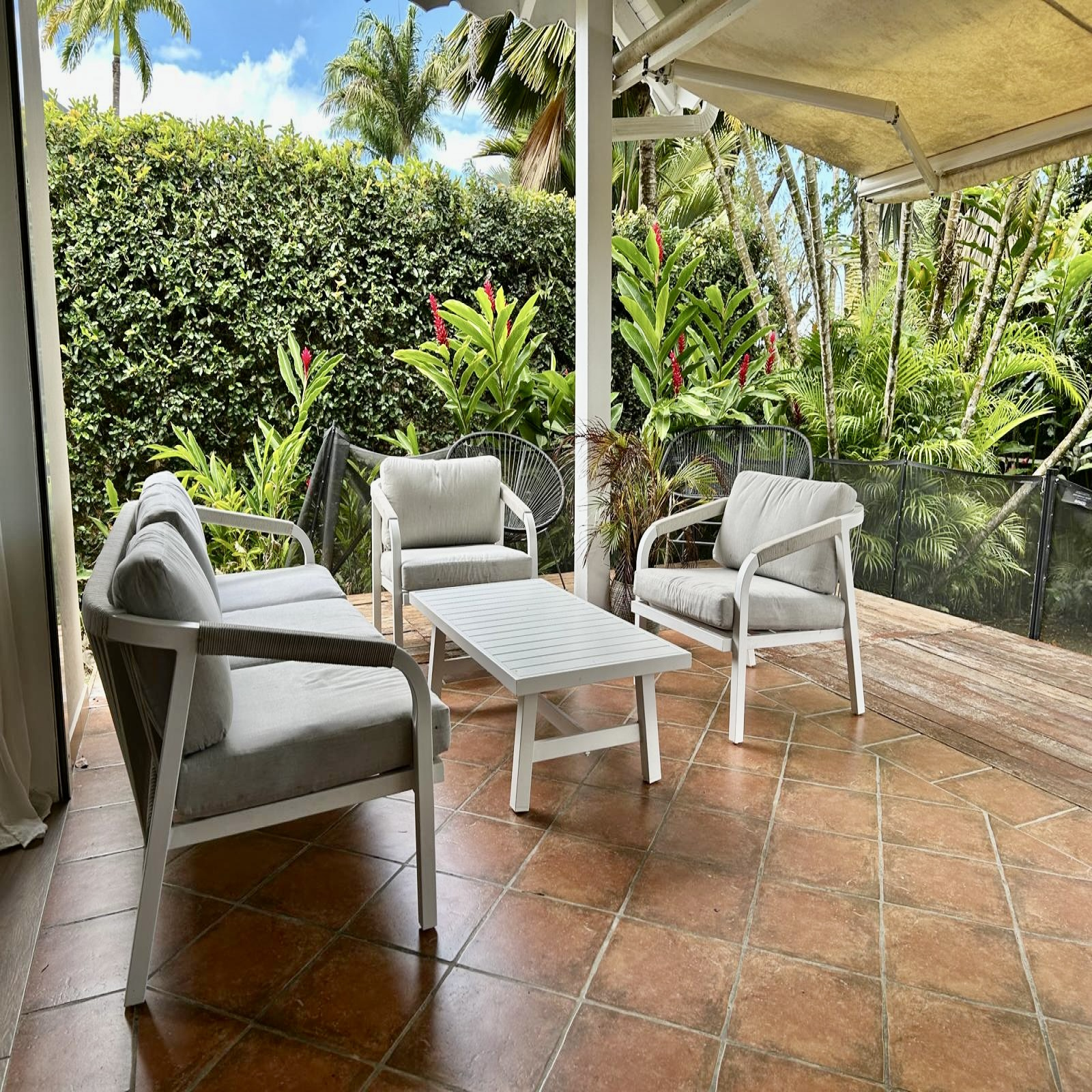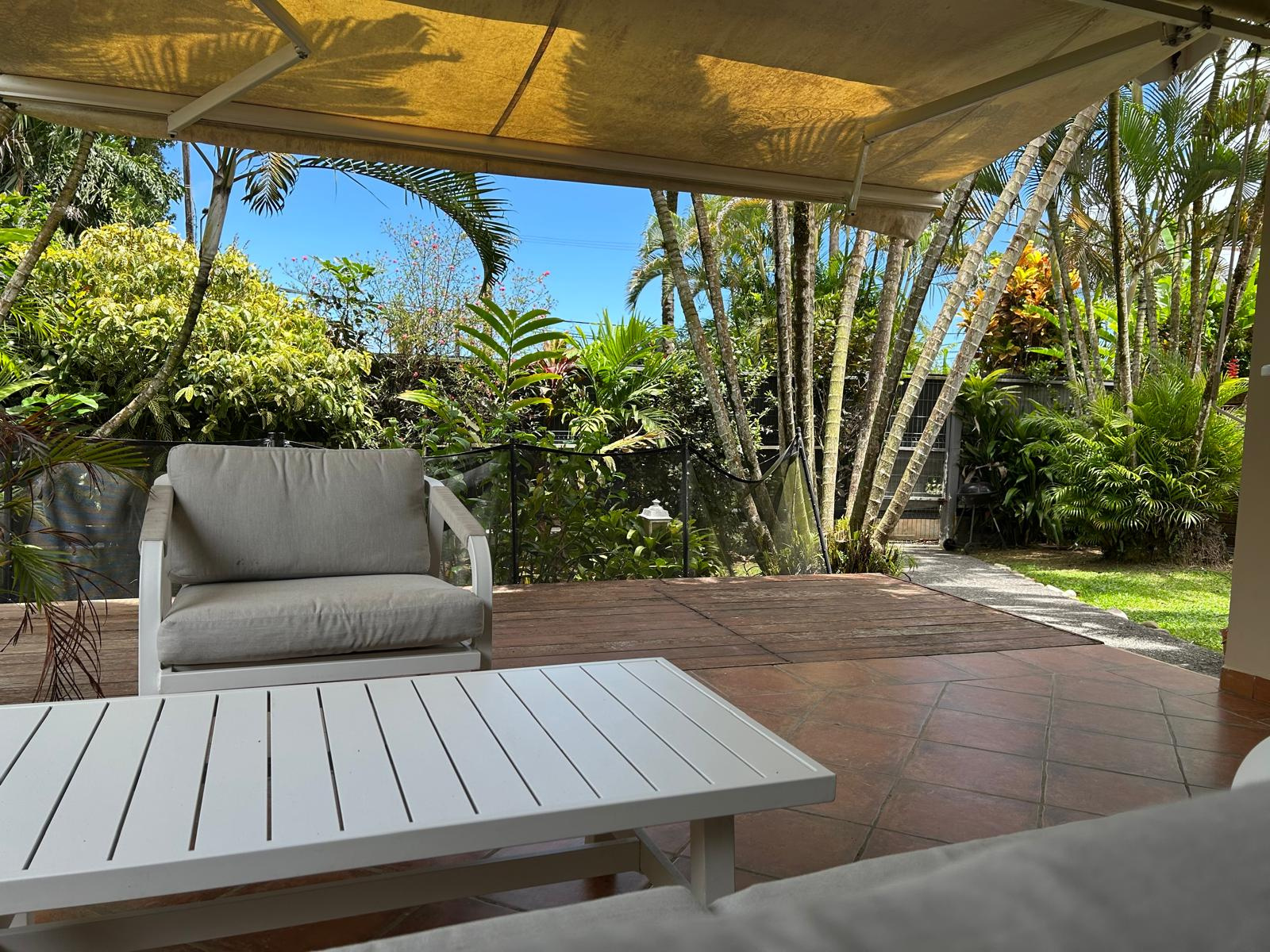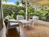 À l’extérieur, vous profiterez d’une agréable terrasse couverte, ouverte sur un jardin intime et arboré, propice à la détente et aux moments de convivialité en toute tranquillité.