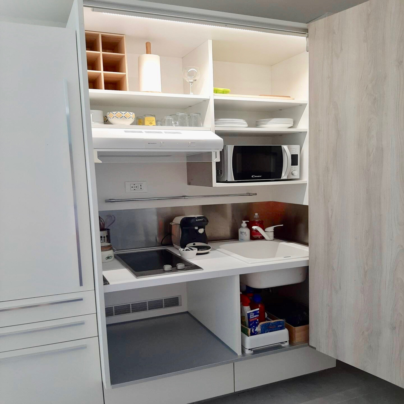 Le studio est vendu entièrement meublé et équipé, prêt à être exploité en location saisonnière. Il se compose de :