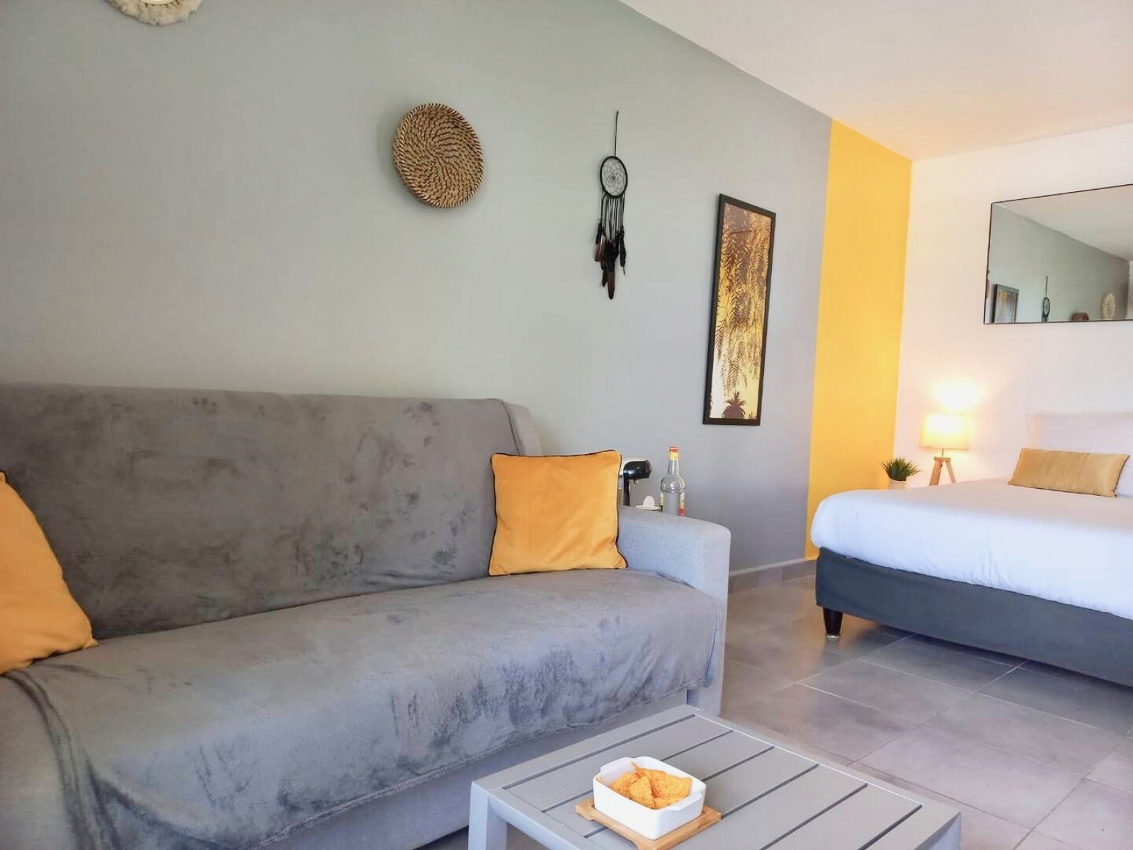 - Une pièce principale lumineuse avec un lit double et un canapé-lit