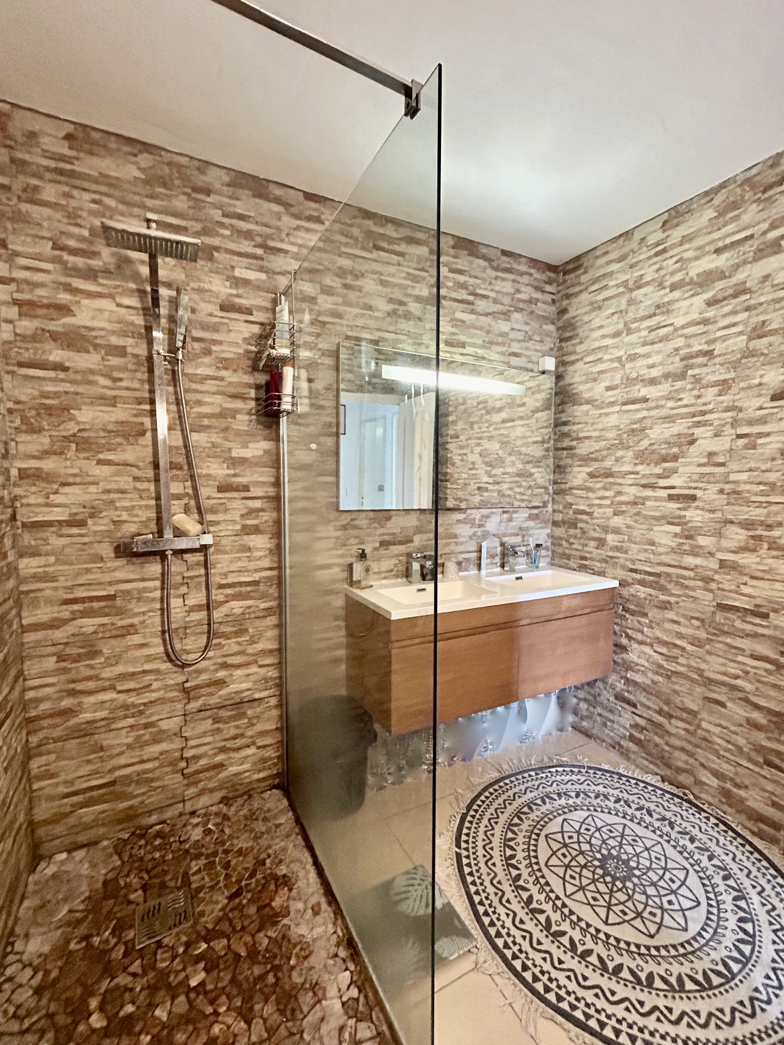 - Une cuisine américaine aménagée ouverte sur un double séjour, avec la possibilité de créer une 3ème chambre si besoin