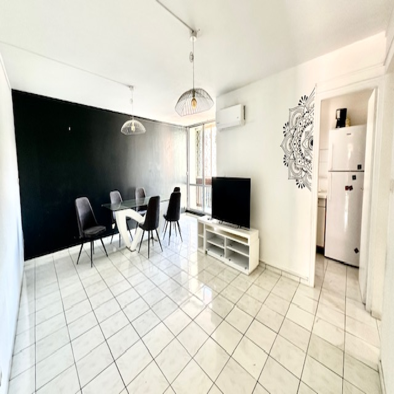 - Appartement lumineux et bien agencé : Un séjour climatisé, une cuisine avec cellier, une entrée avec placard, ainsi qu’une salle de bains avec WC séparés.