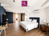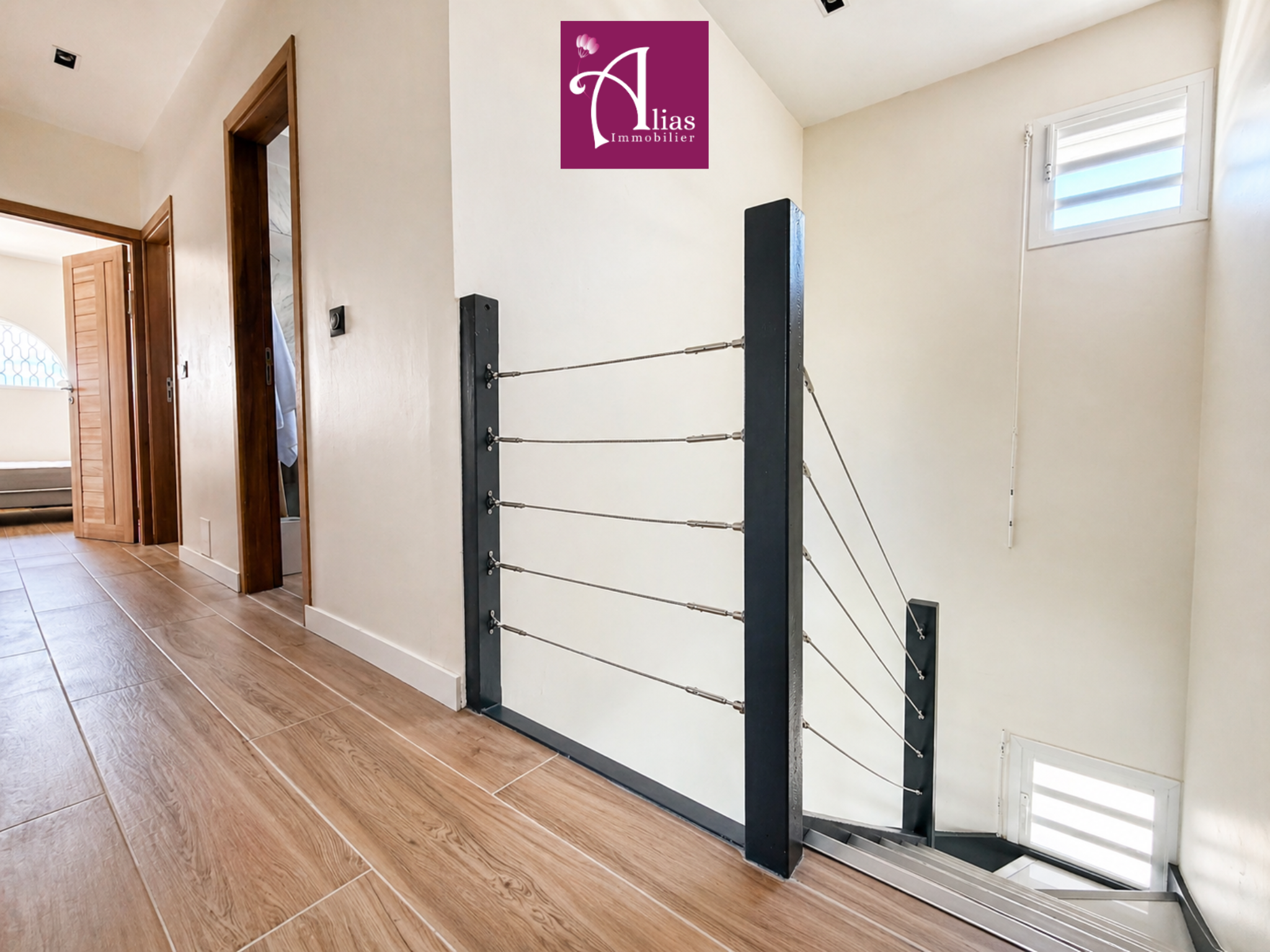 Un escalier mène à l’espace nuit situé à l’étage. Chaque chambre dispose de son balcon avec vue mer. L’appartement comprend une suite parentale avec dressing, salle d’eau et WC, une pièce supplémentaire pouvant être aménagée selon vos besoins avec accès à une terrasse panoramique, une deuxième chambre climatisée avec placards, une salle de bain avec WC, ainsi qu’une troisième chambre climatisée avec placards et salle d’eau attenante avec WC, une buanderie avec une citerne d'eau.
