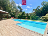 À l’extérieur, vous profiterez d’une grande terrasse couverte donnant sur une grande piscine et un espace détente idéal pour des moments de détente ou pour recevoir des invités en toute convivialité.